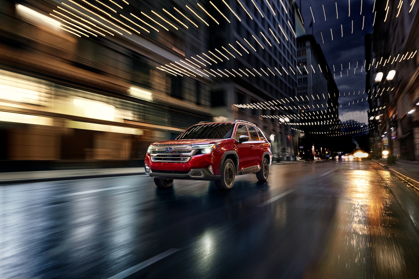 The 2026 Subaru Forester boasts a bold and dynamic exterior design that turns heads wherever you go. Get ready to make a statement all over town in your new Forester. Its athletic stance, sculpted lines, and distinctive hexagonal grille create a commanding presence on the road. Standard LED Steering Responsive Headlights with High Beam Assist not only look sharp but also improve visibility in all conditions. An available power tilt/sliding panoramic moonroof opens up the cabin to natural light and fresh air, perfect for scenic drives through Fort Wayne.